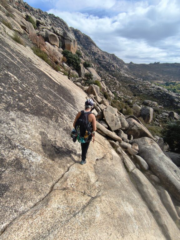 Un secteur parfait pour une première expérience en plusieurs longueurs. Des voies en 4 et 5. Nous avons fait la voie Placas de Canallas (IV+/V), deux longueurs idéales pour se familiariser avec le rocher.