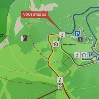 Le stationnement se fait à proximité de la Ferme auberge Seestaedlé. La marche d'approche est courte et facile, environ 15 minutes en montée et descente. Le sentier est fléché, il faut partir par le chemin qui monte à droite de l'auberge en face du parking, il passe au dessus de celle ci puis on suit un chemin indiqué sur la droite qui monte à la falaise.