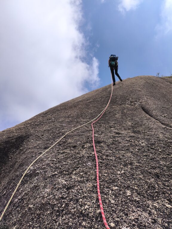 La voie "Mundo dos Muggles" est un itinéraire de trois longueurs, avec une cotation de V+.