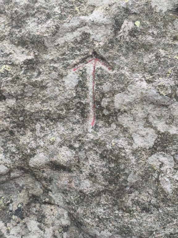 Se garer dans la boucle de la D 354. Prendre le chemin qui descend, prendre ensuite la piste en passant la barrière ONF et la suivre pendant 700 m. Ne pas prendre la piste qui part à gauche (barrière et panneau). Continuer jusqu'à voir un cairn sur la gauche, monter en suivant les cairns dans la foret jusqu'au bas de la falaise. Une flèche y est gravée.